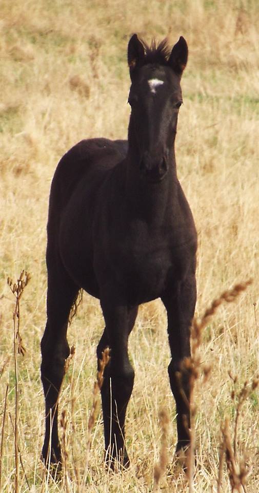 Wargana (Han) x Autocrat (Han) Born May 6th, 2009. Black filly with a backwards C, and one half cannon sock. Very leggy and quite compact with an uphill build and high neck set. Atlanta is being retained as a breeding prospect.