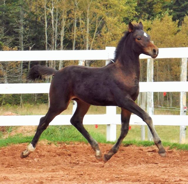 4) Bedeque (Bonheur/Sir Oldenburg/Florestan) Dark bay colt born July 7th. Star, stripe, snip and white on 3 legs.