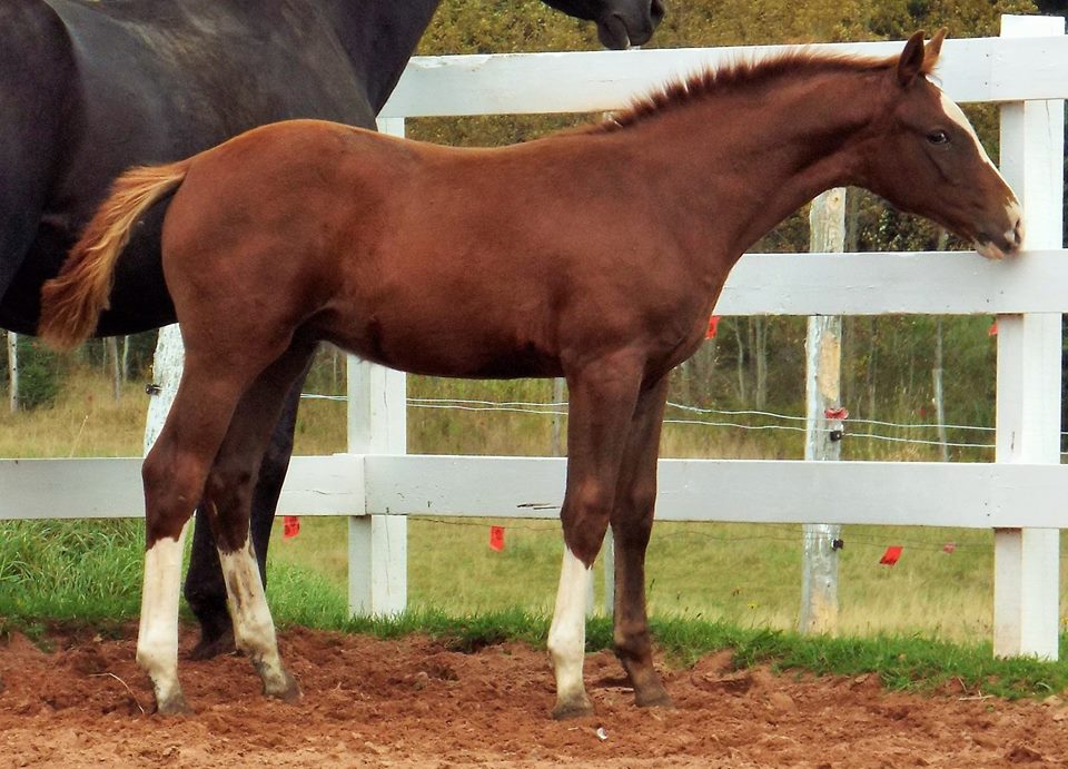 2) Bonheur x Esprentina NPF: May 20th Lovely chestnut filly with star, snip, and three white socks.