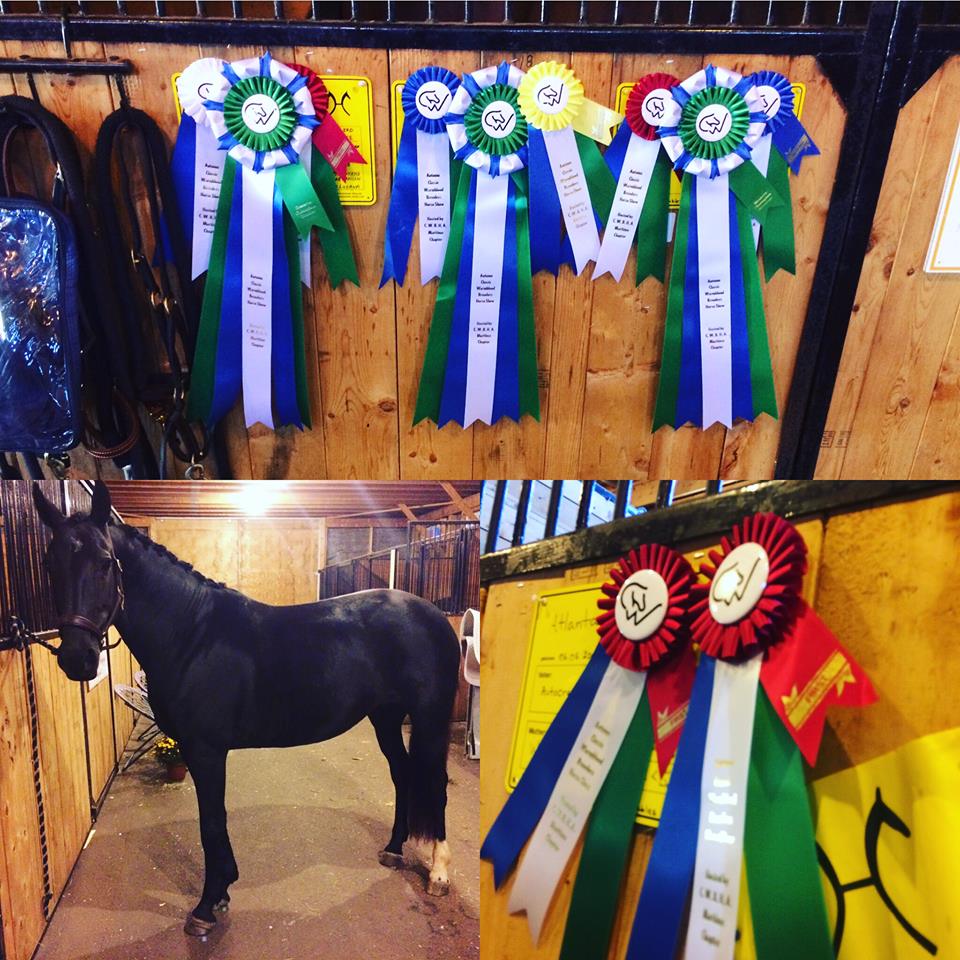 Wargana is doing great with her new owner Chloe. They have gone to two shows together and are pictured above. She and Chloe placed 1st over crossrails and 3rd over 2'3''. They got 5th and 6th place ribbons in their flat classes.