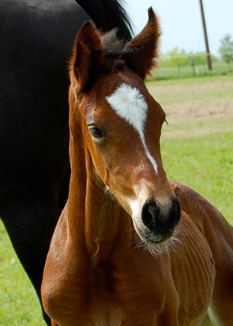 Lu foaled at 10pm on May 24th, having a tall and leggy bay filly. She is super sweet with a crooked blaze and one rear sock. Check out the foals' page for pictures.