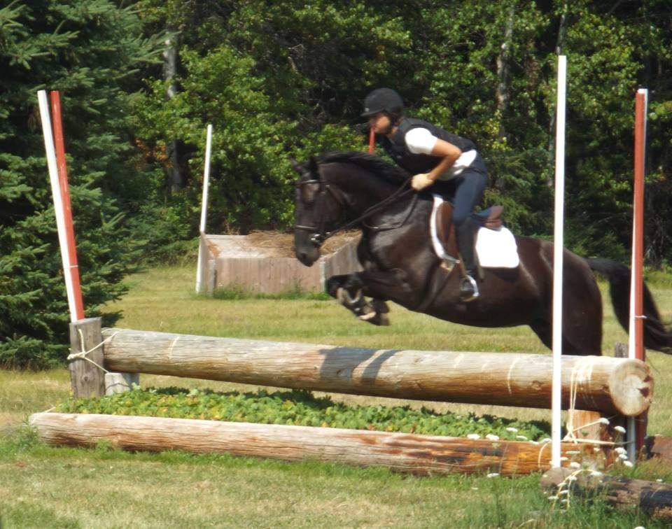 Photo of Lisa and Atlanta from summer 2014 during a cross-country clinic in PEI. Sold to NB and ON.